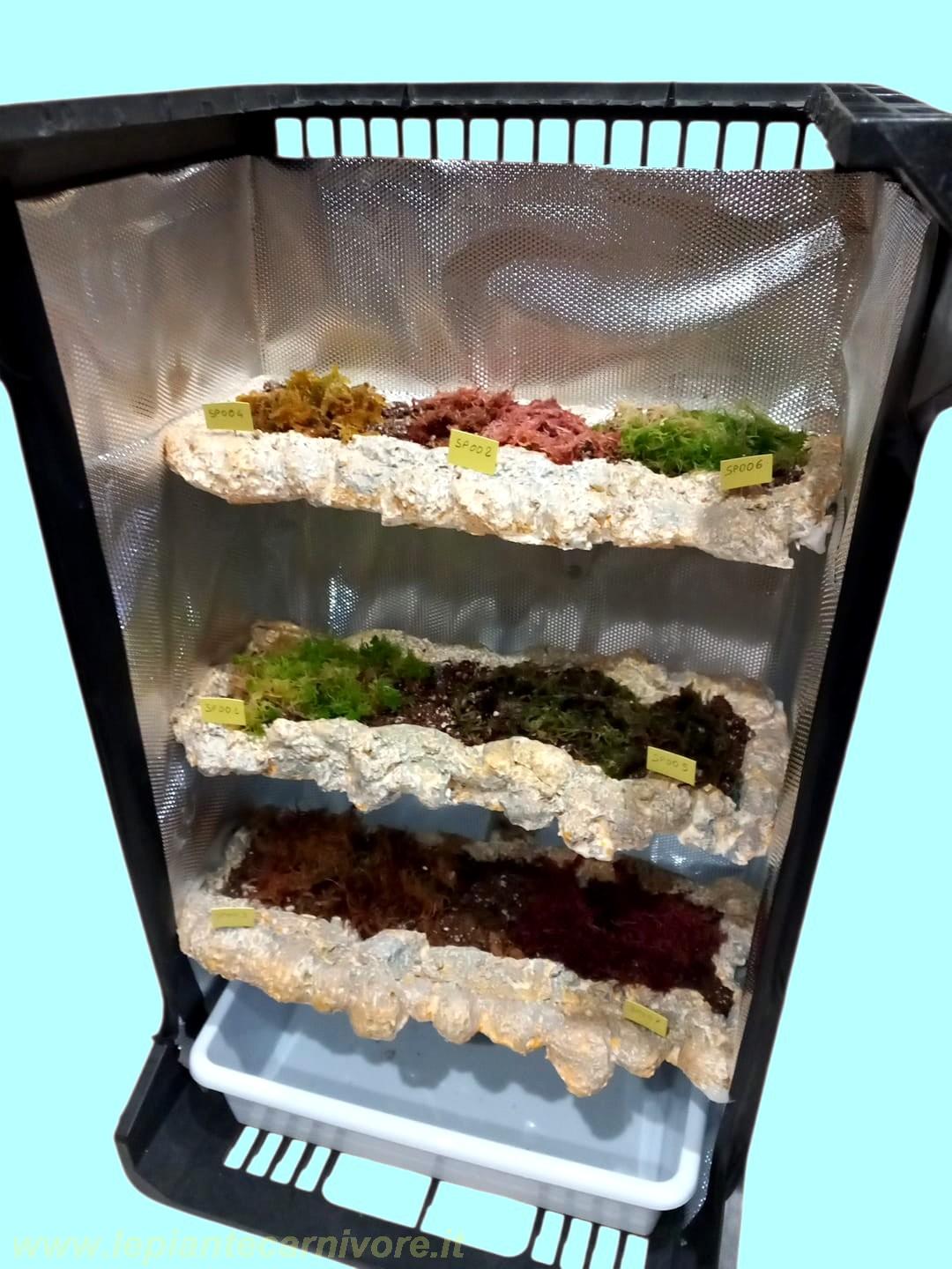 Una Sfagnera a "Luce rubata" è un sistema di coltivazione a più livelli coltivativi, progettato per la crescita dello Sfagno vivo che